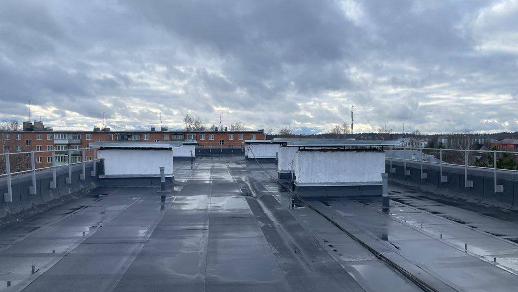 установили современную однослойную кровлю из прочного рулонного полимерного материала;